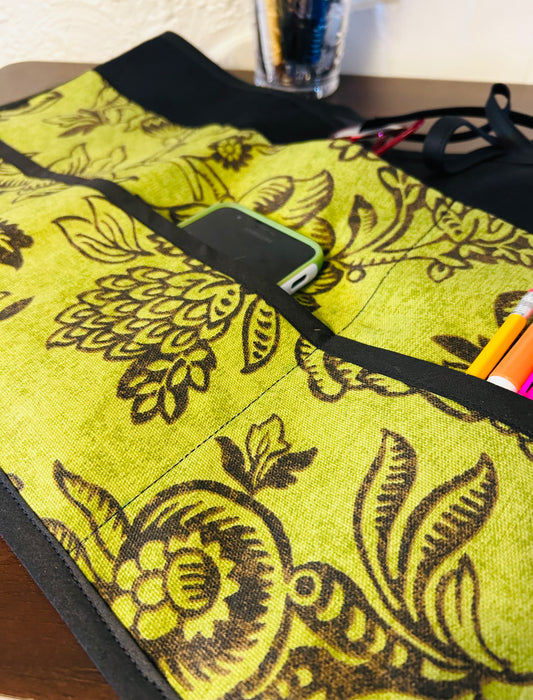 These stylish Aprons are great for keeping your clothing clean no matter what task you're working on. Most of our Kitchen Aprons have bib fronts and pockets, and have ties long enough to tie in front or back. The Utility Aprons are approximately 15 inches from the waist down. Each has two rows of 3 large pockets for carrying all your needs with you as you work. Each Utility and Garden Apron comes with a handy alligator clip attached. Stay clean and stylish with our Specialty Aprons.